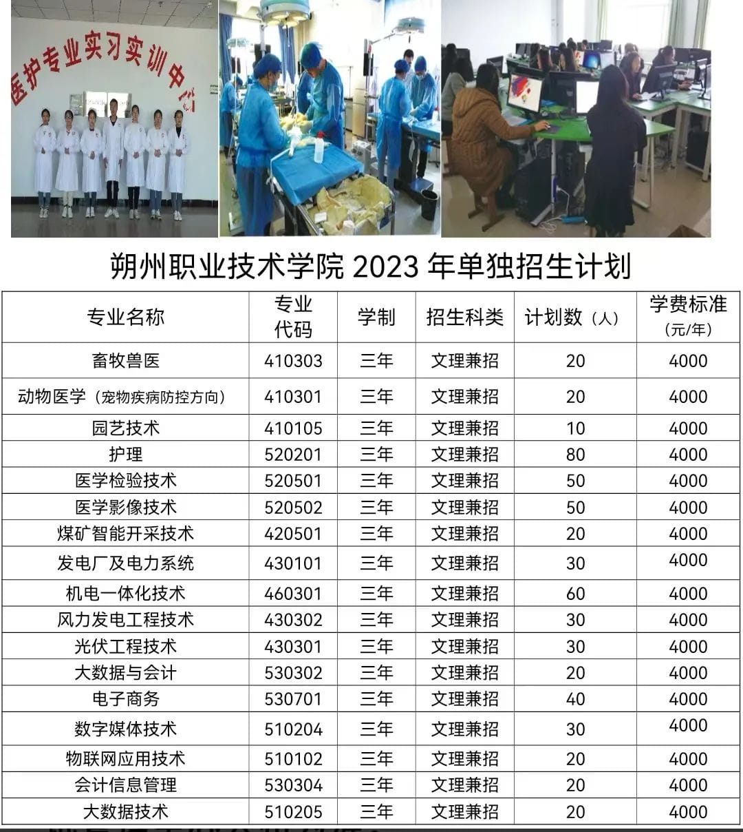 朔州职业技术学院是2007年经山西省人民政府批准、教育部备案全日制高职院校。学院办学条件优良,教学设备先进,专业设置合理,师资力量雄厚,日常管理规范,校园环境优美,文化氛围独特。学院坚持以立德树人为根本,以服务发展为宗旨,以促进就业为导向,全力推进校企合作,强化内涵建设,丰富办学特色,力争建成“特色鲜明、全省一流”高职院校。2021年被教育部确定为全国急救教育试点学校。